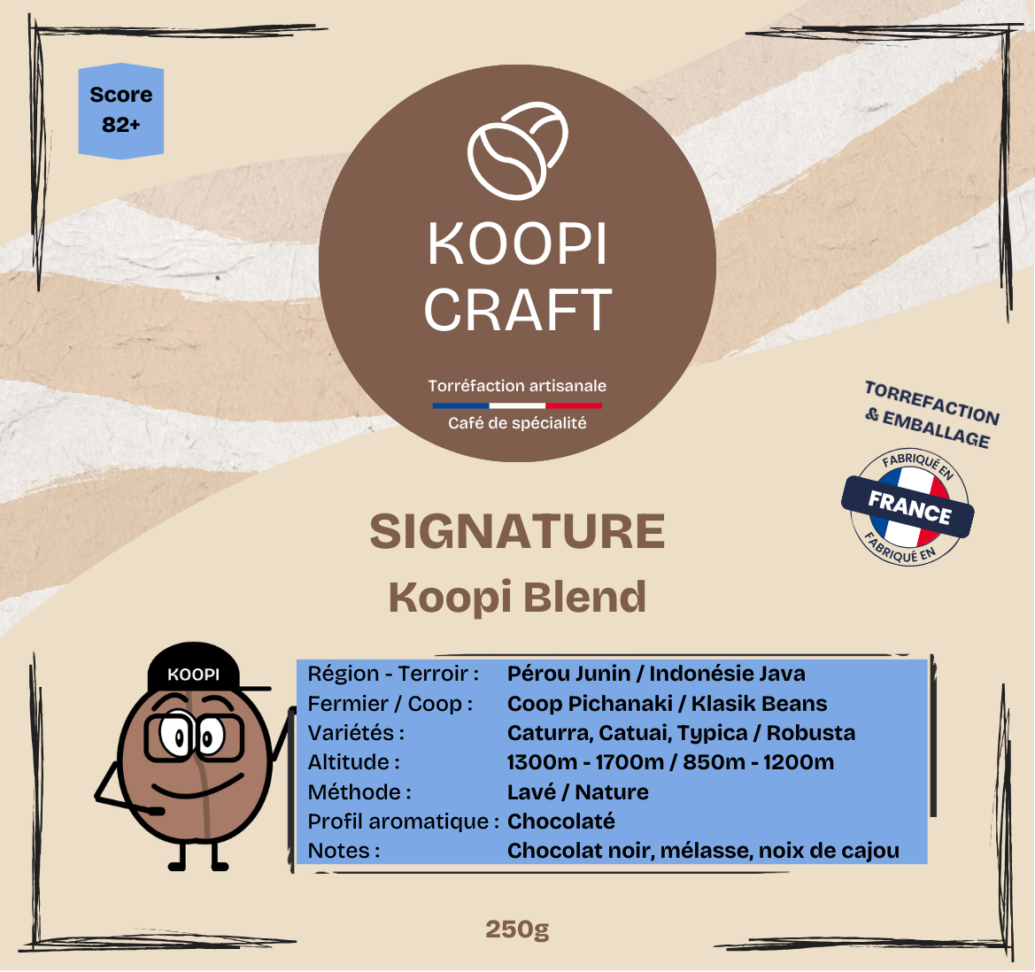 - un arabica doux et équilibré du Junín, apportant finesse, légèreté fruitée et rondeur,